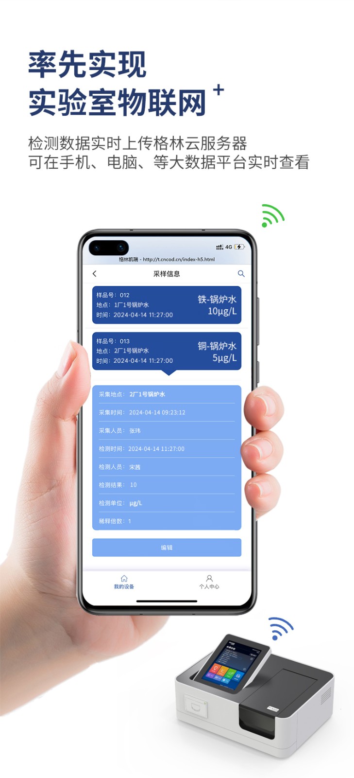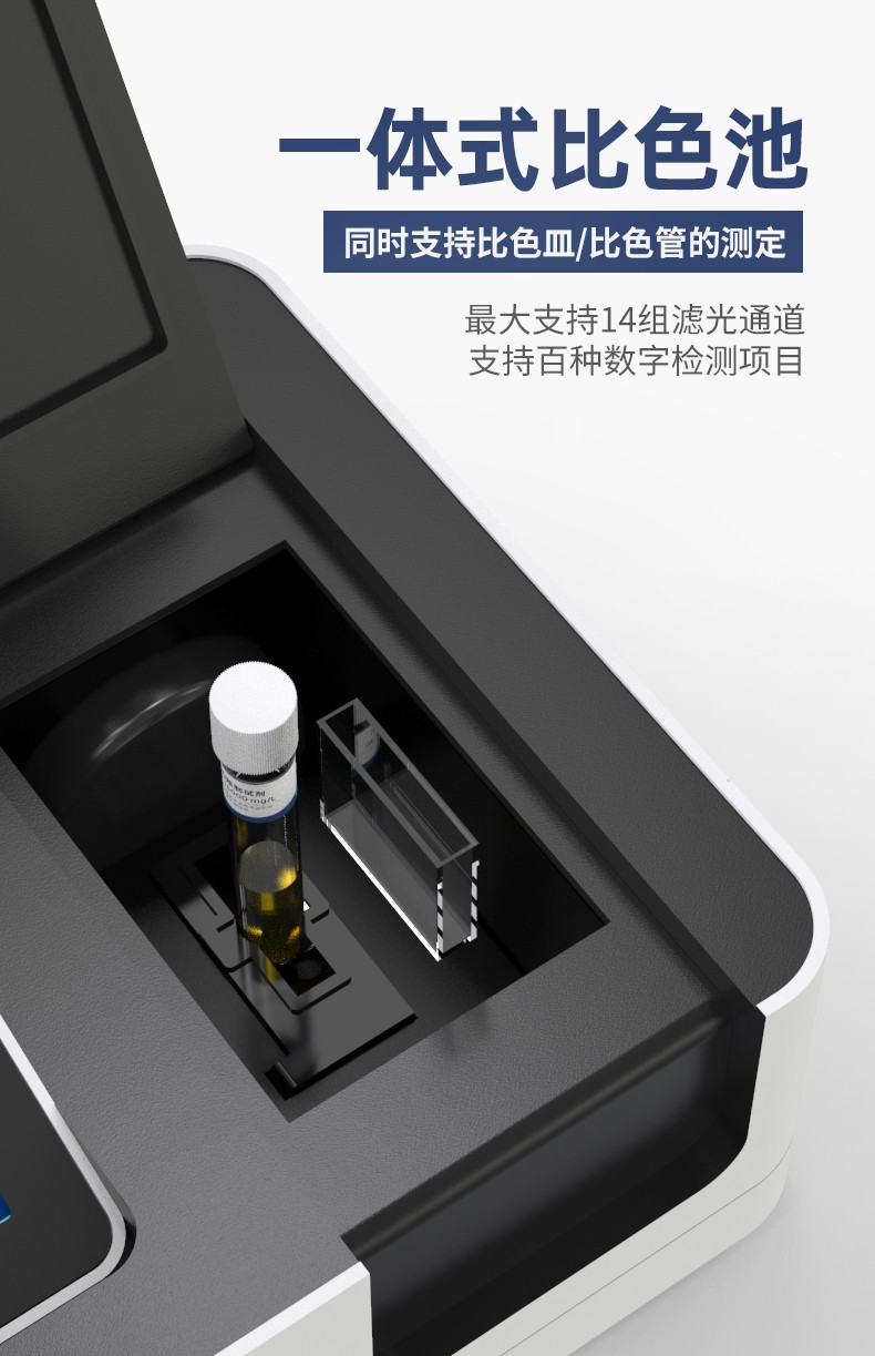 測定項目的原理符合環保行業認可方法,設備的光源、傳感器為國外進口,擁有更穩定的光學性能,設備搭載自主研發的Glos水質智能檢測系統和一體式雙比色池技術,使檢測變得更簡單,更穩定。